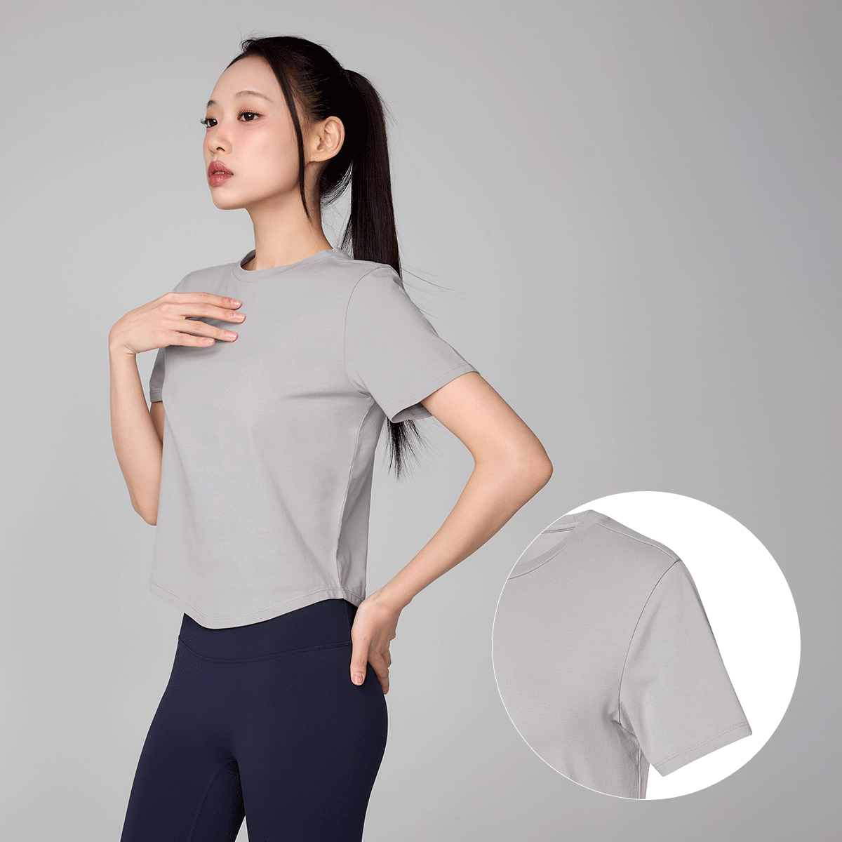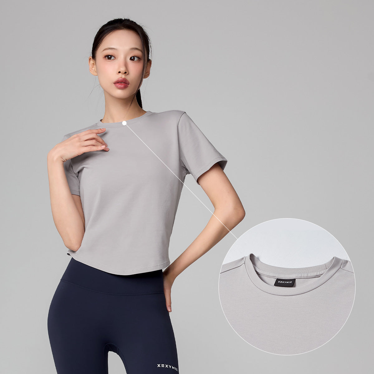 It is designed with a basic crew neck to focus on working out!