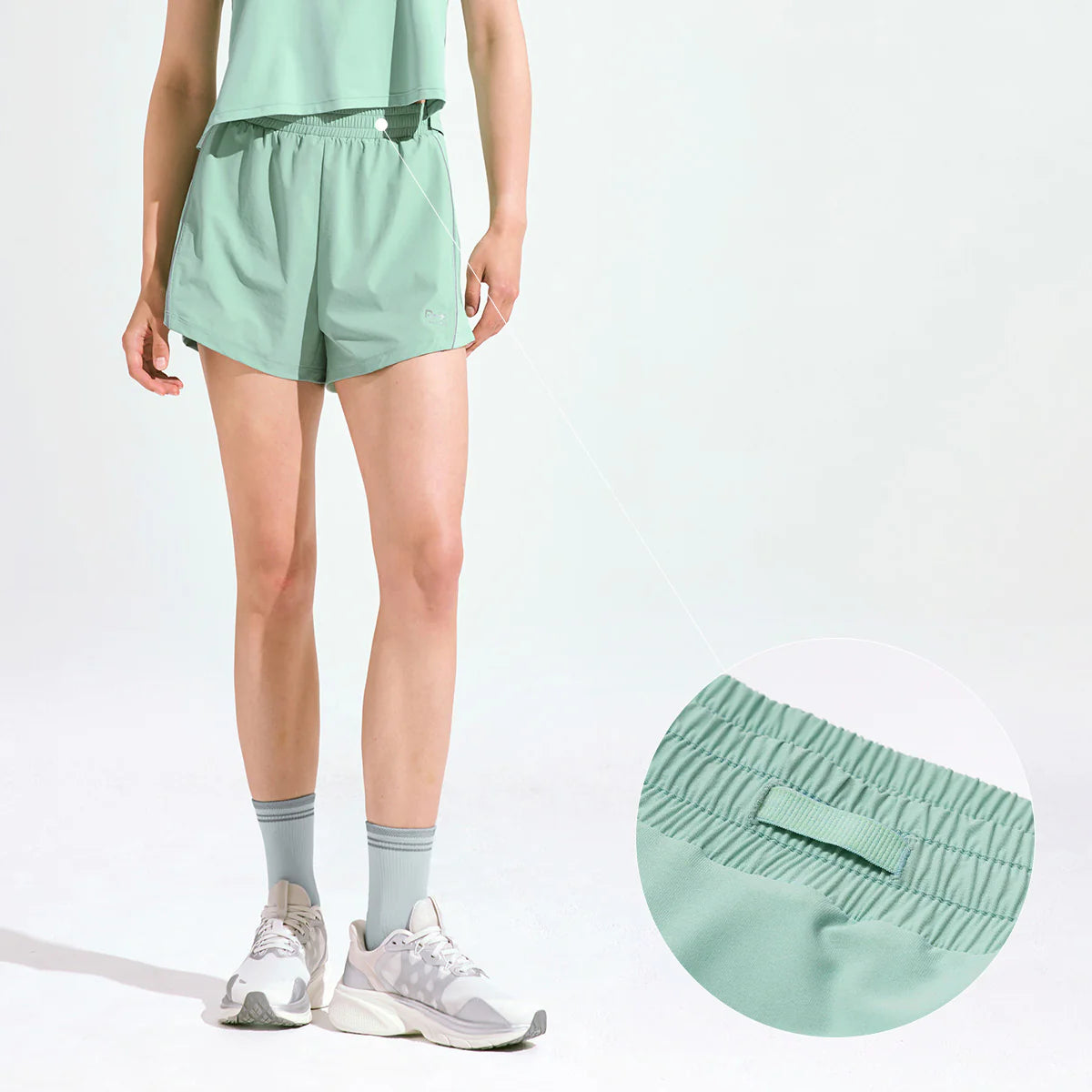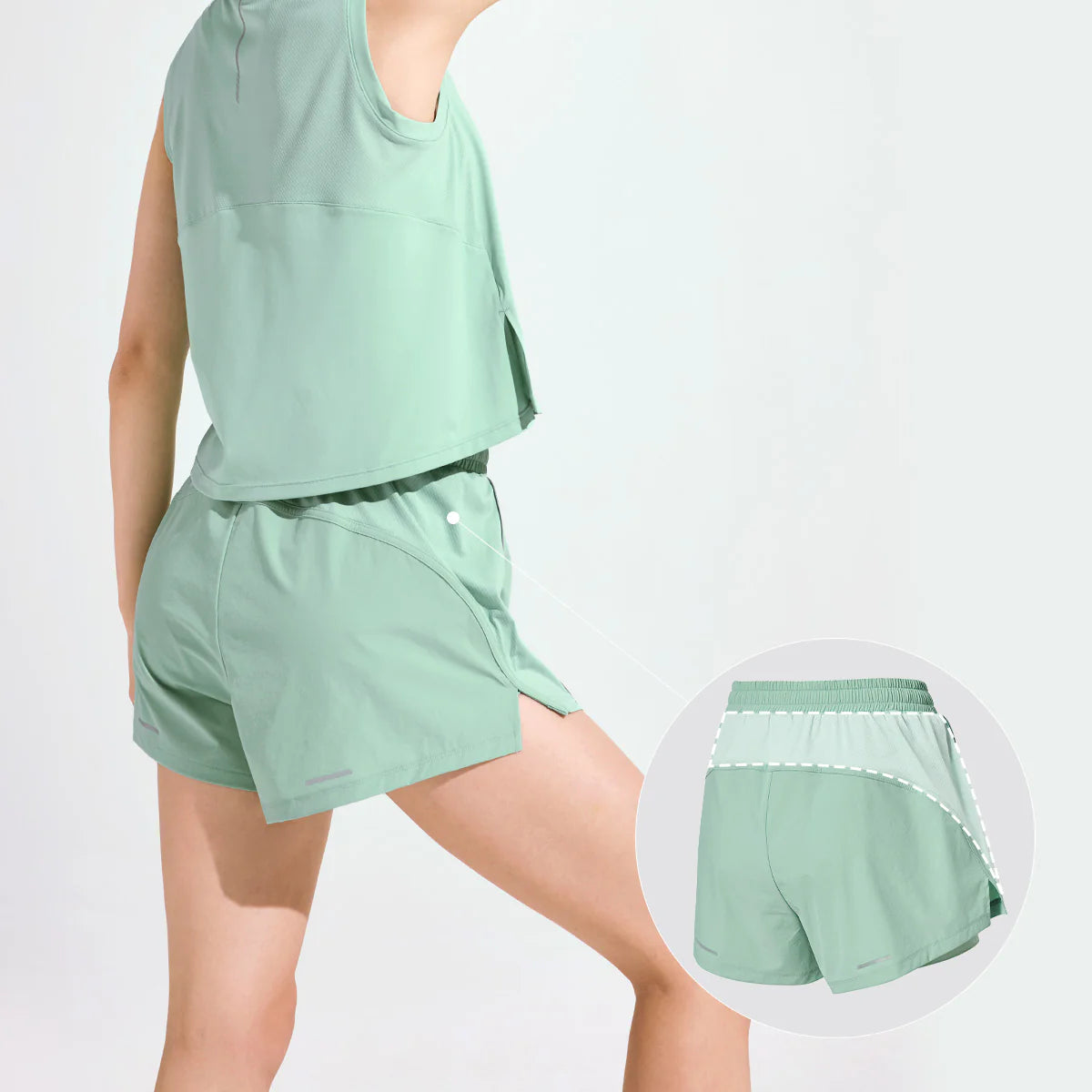 Mesh panels on the sides and back waist improve breathability while adding visual interest and a modern touch.