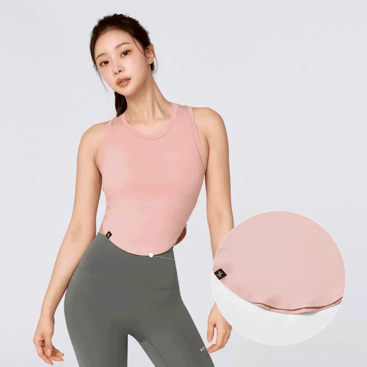 The round hem cut in a round shape exposes the waist, creating a slimmer waist line.