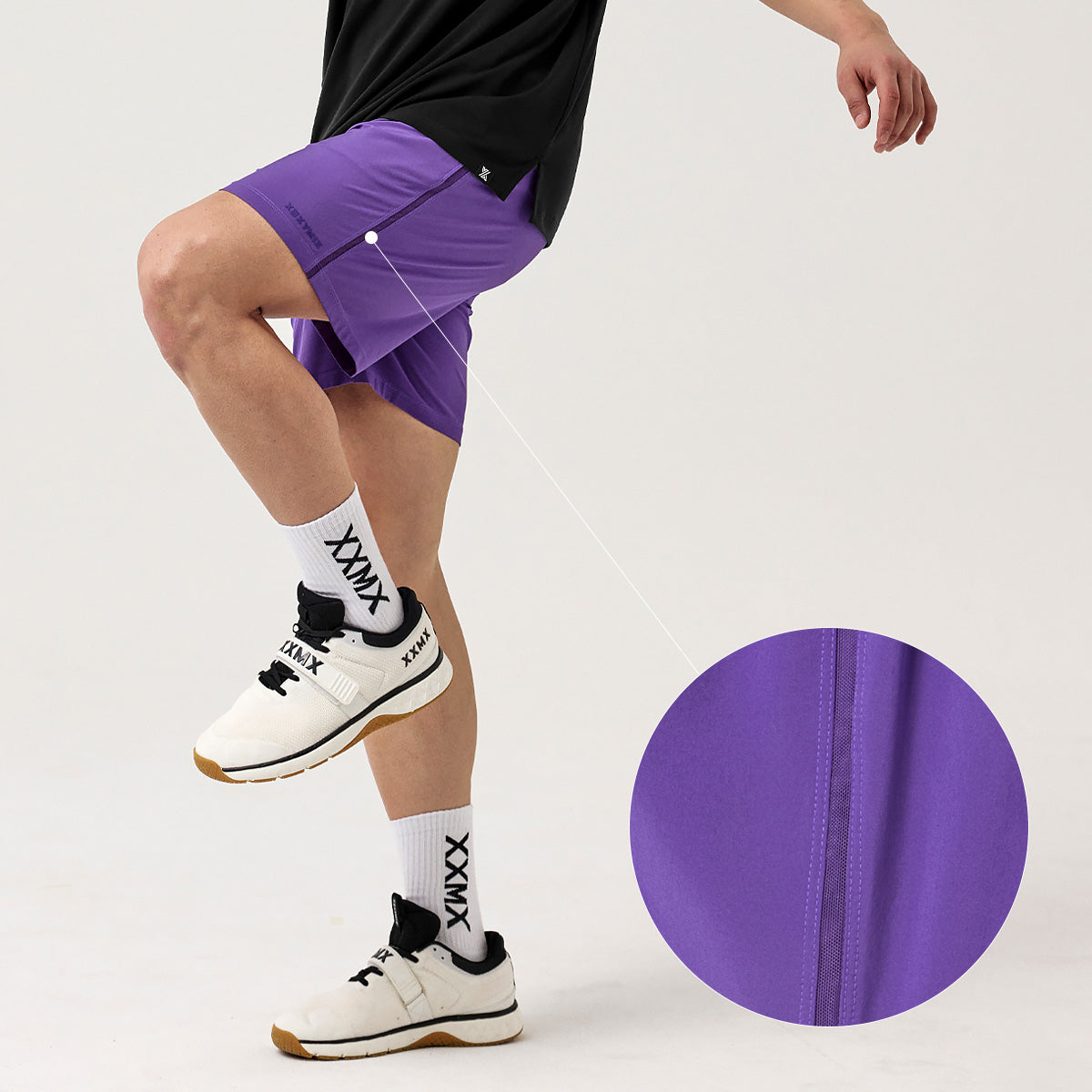 Highly breathable mesh fabric runs along the side lines to enhance airflow, keeping you cool and comfortable even when you sweat.