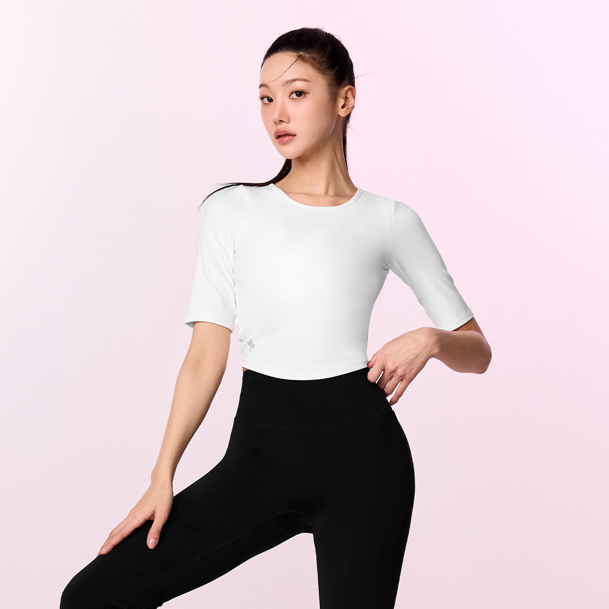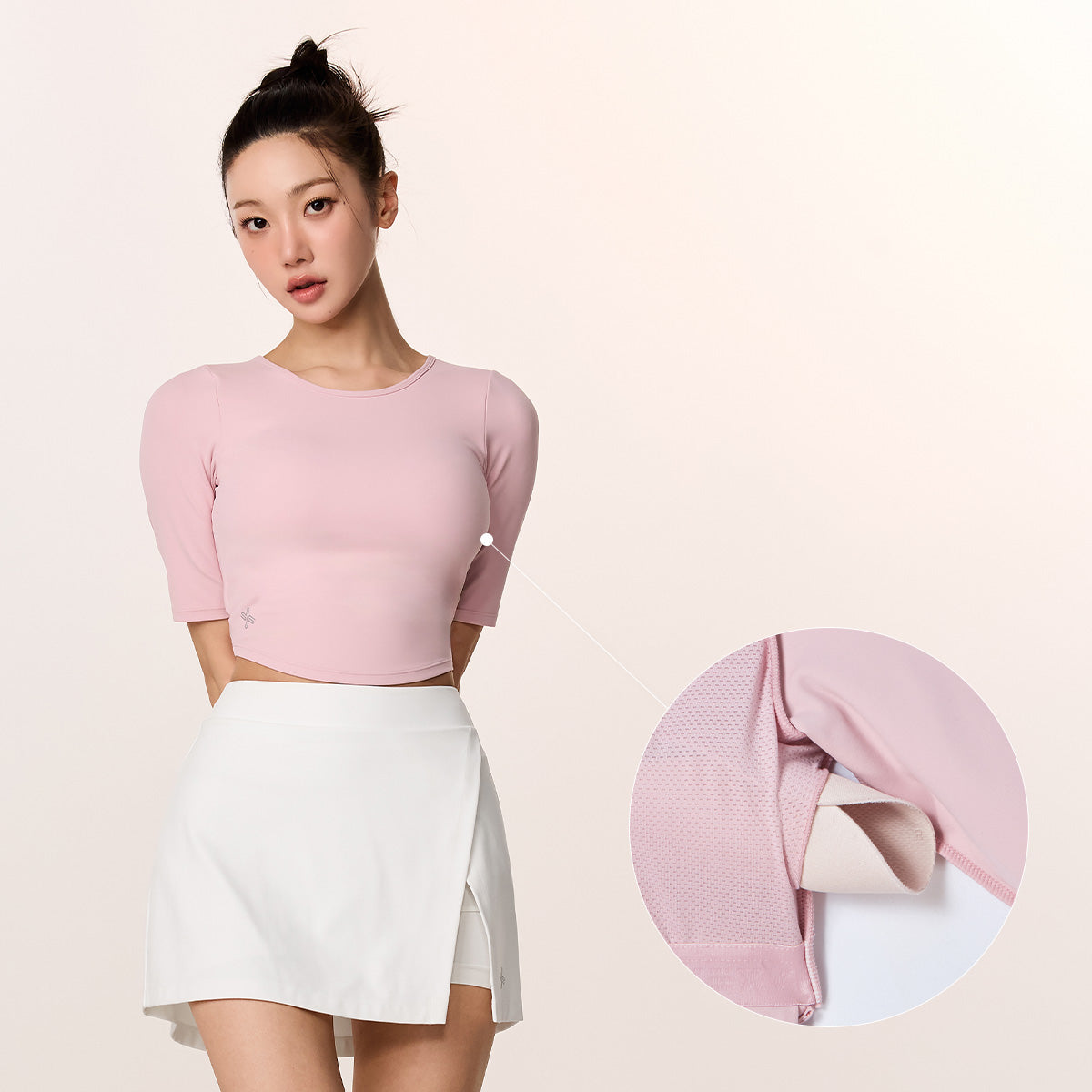The mid-length sleeves softly wrap the arms, helping to cover imperfections while creating a slim, refined silhouette.
