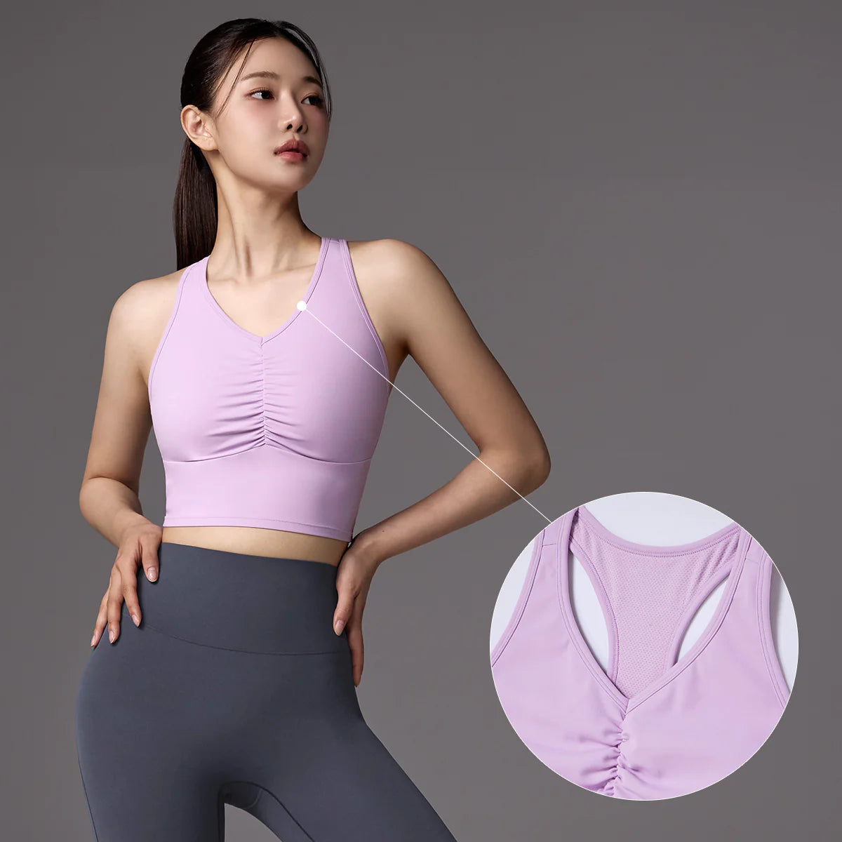 The open-back design increases the range of motion for the arms and shoulder blades, making it easier to observe back muscles during workouts—stylish from every angle.