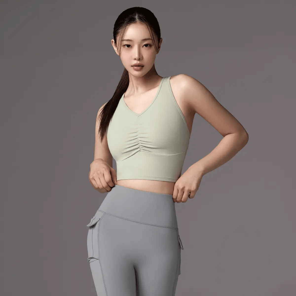 The V-neckline accentuates the shoulders and neckline, offering a feminine touch while allowing free and comfortable movement without feeling constricted.