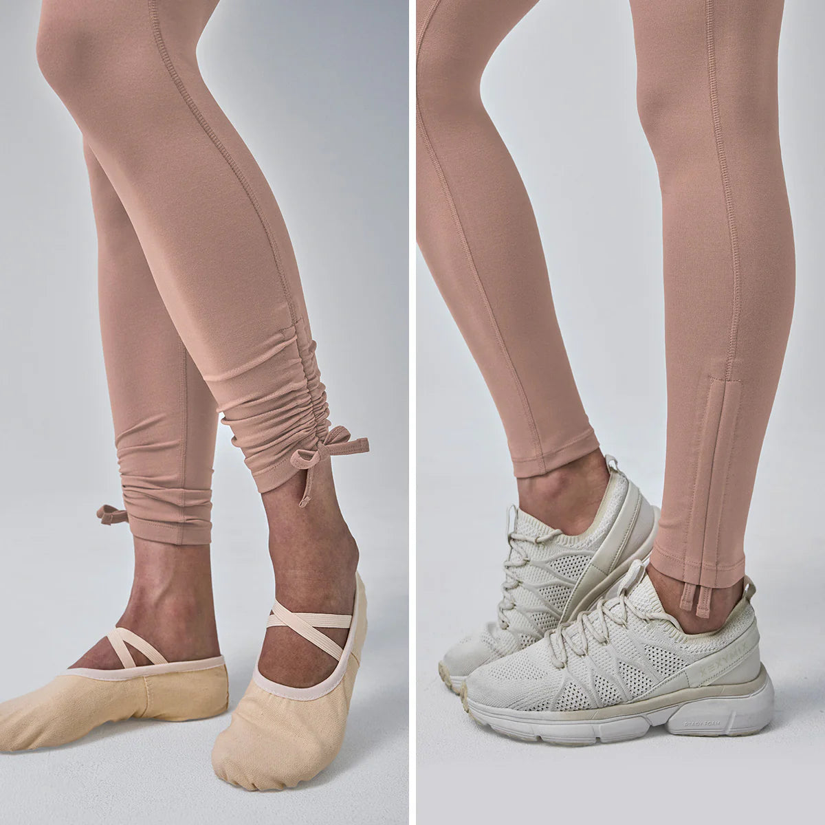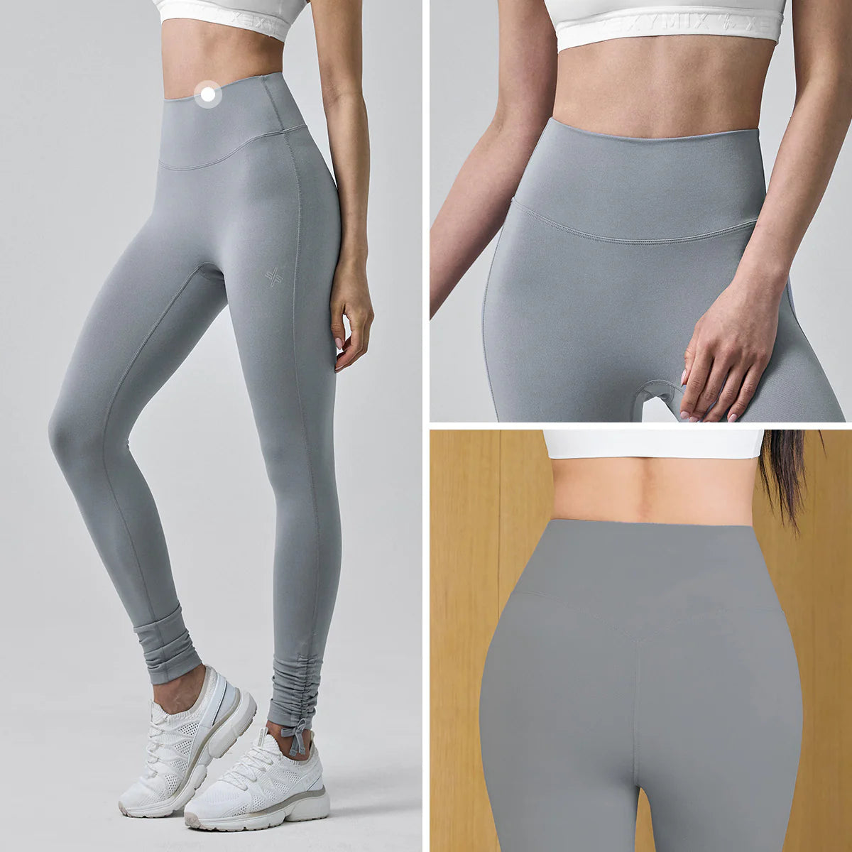 The high-rise waistband sits above the belly button, creating a leg-lengthening effect and flattering silhouette.