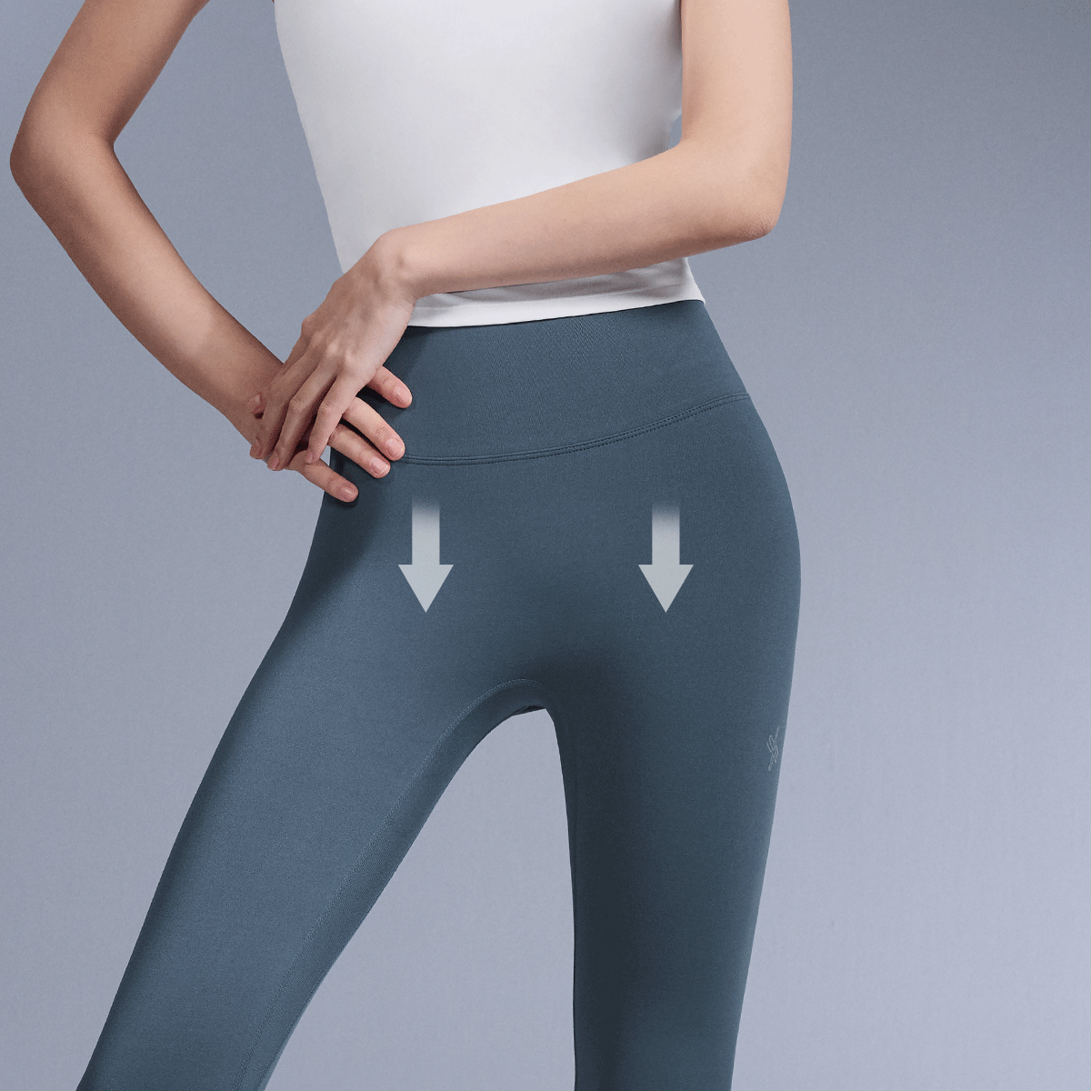 The inside of the thigh is made in the opposite direction to the body fabric for high support and to make the body slimmer.