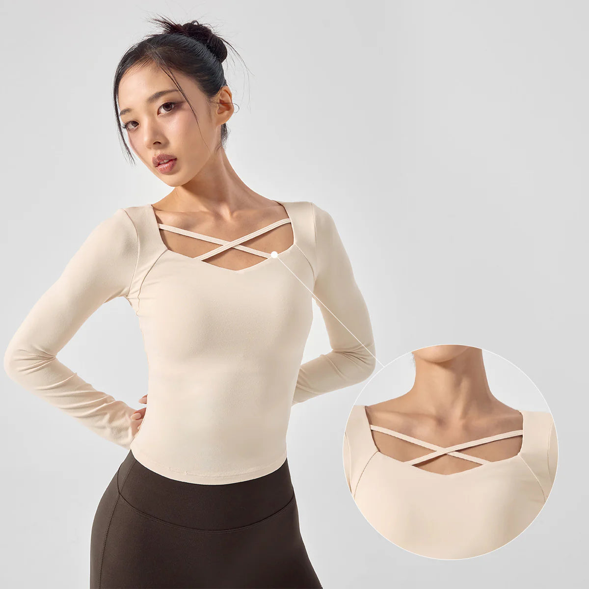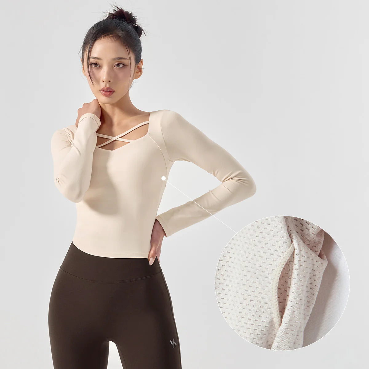 Cotton-Like Cross-String Padded Long Sleeve