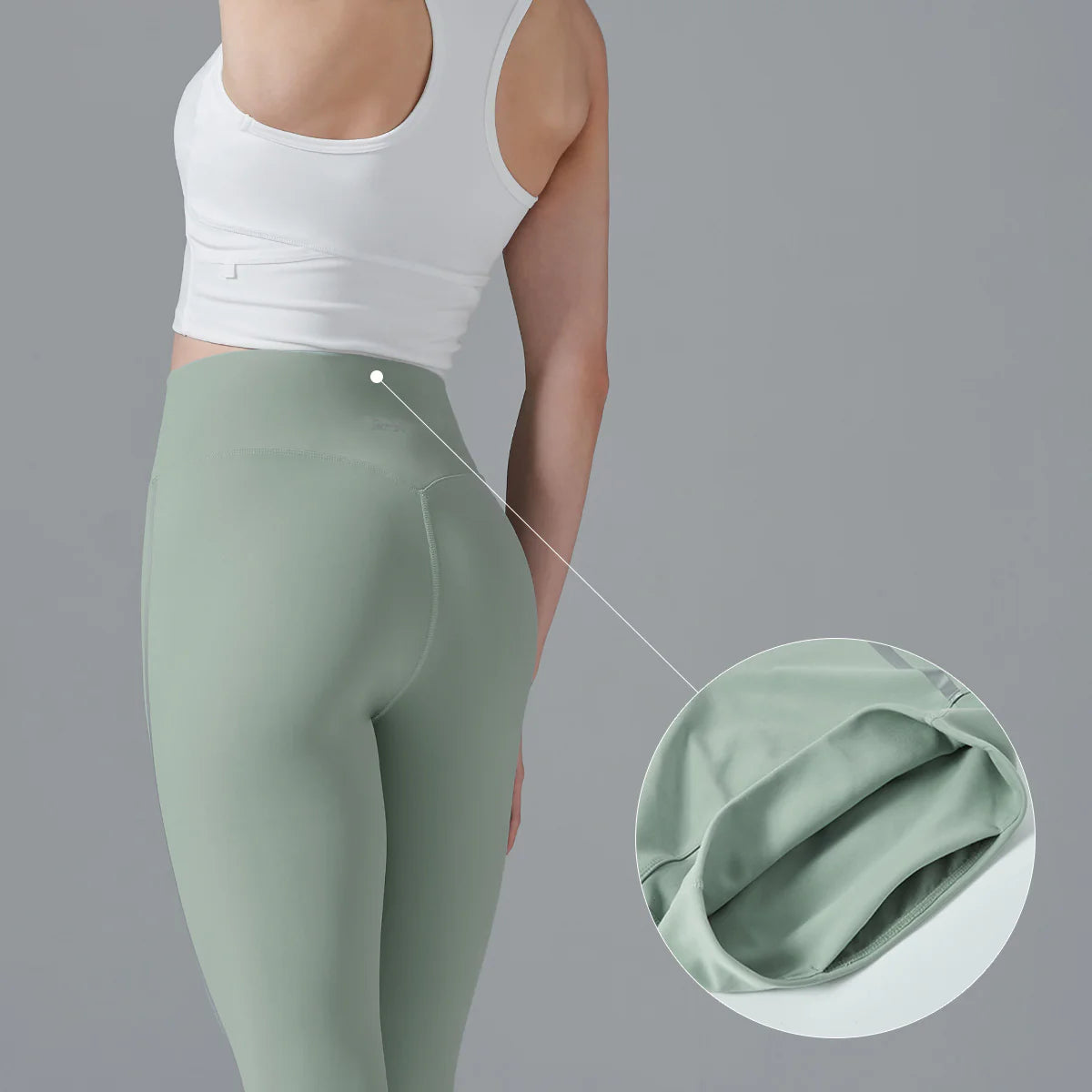 The front center seam has been removed to prevent camel toe, making it perfect to wear confidently with crop tops.