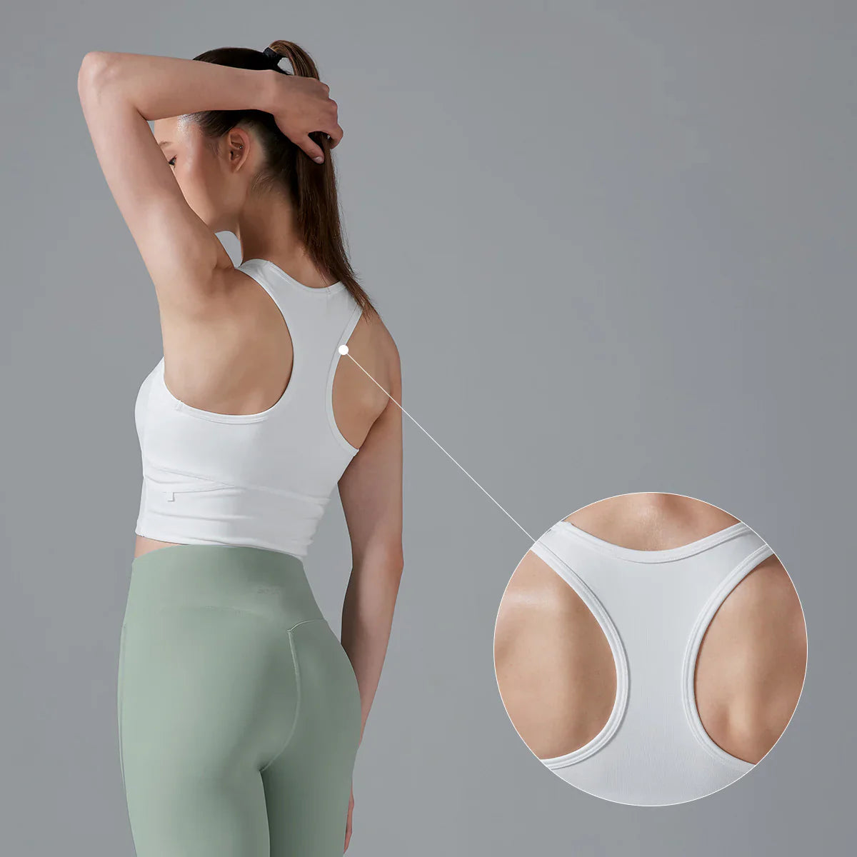 The racerback design supports full range of arm movement without pressing on the shoulder blades, providing maximum comfort.