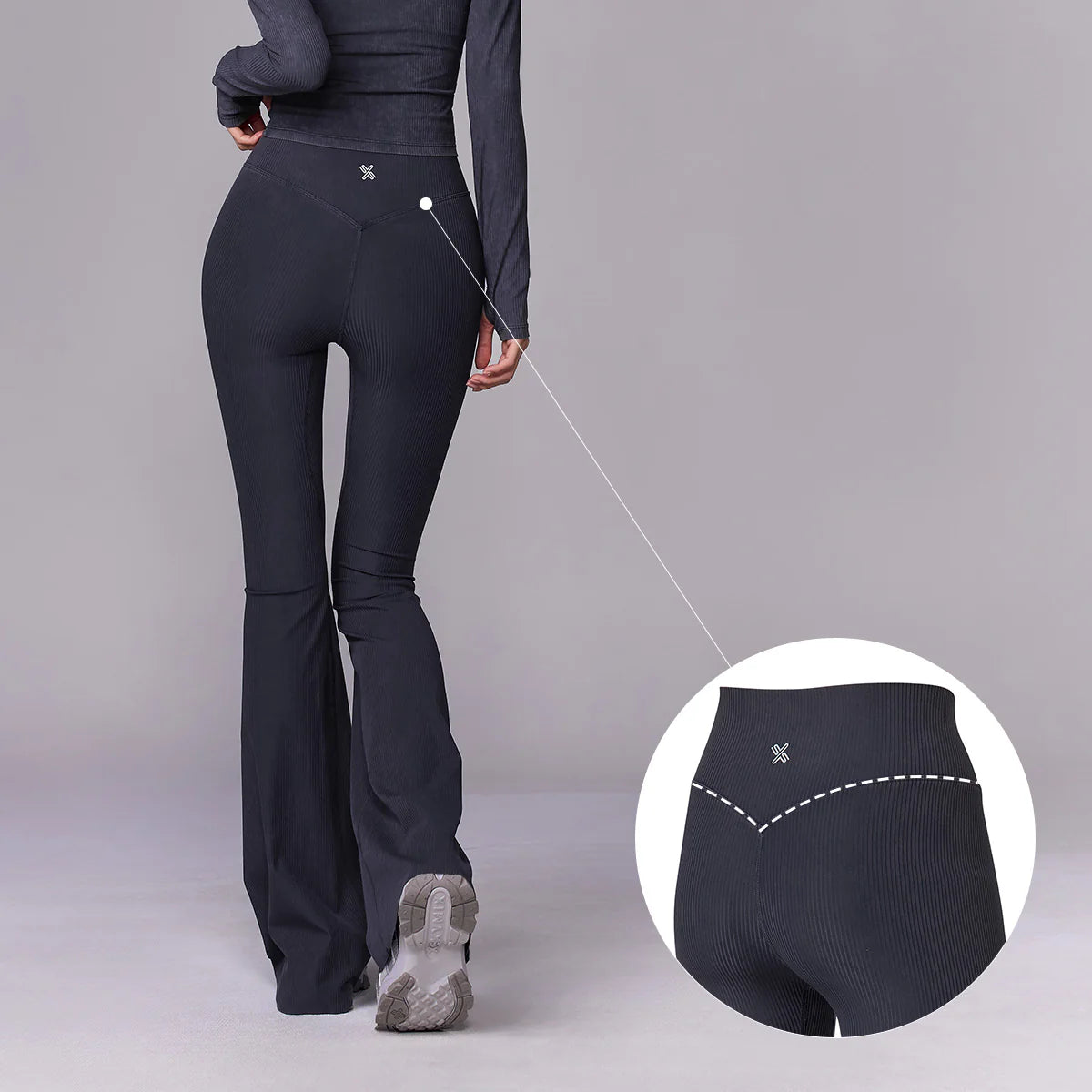 The high-rise design sits above the navel, elongating the legs and creating a flattering, well-balanced silhouette.