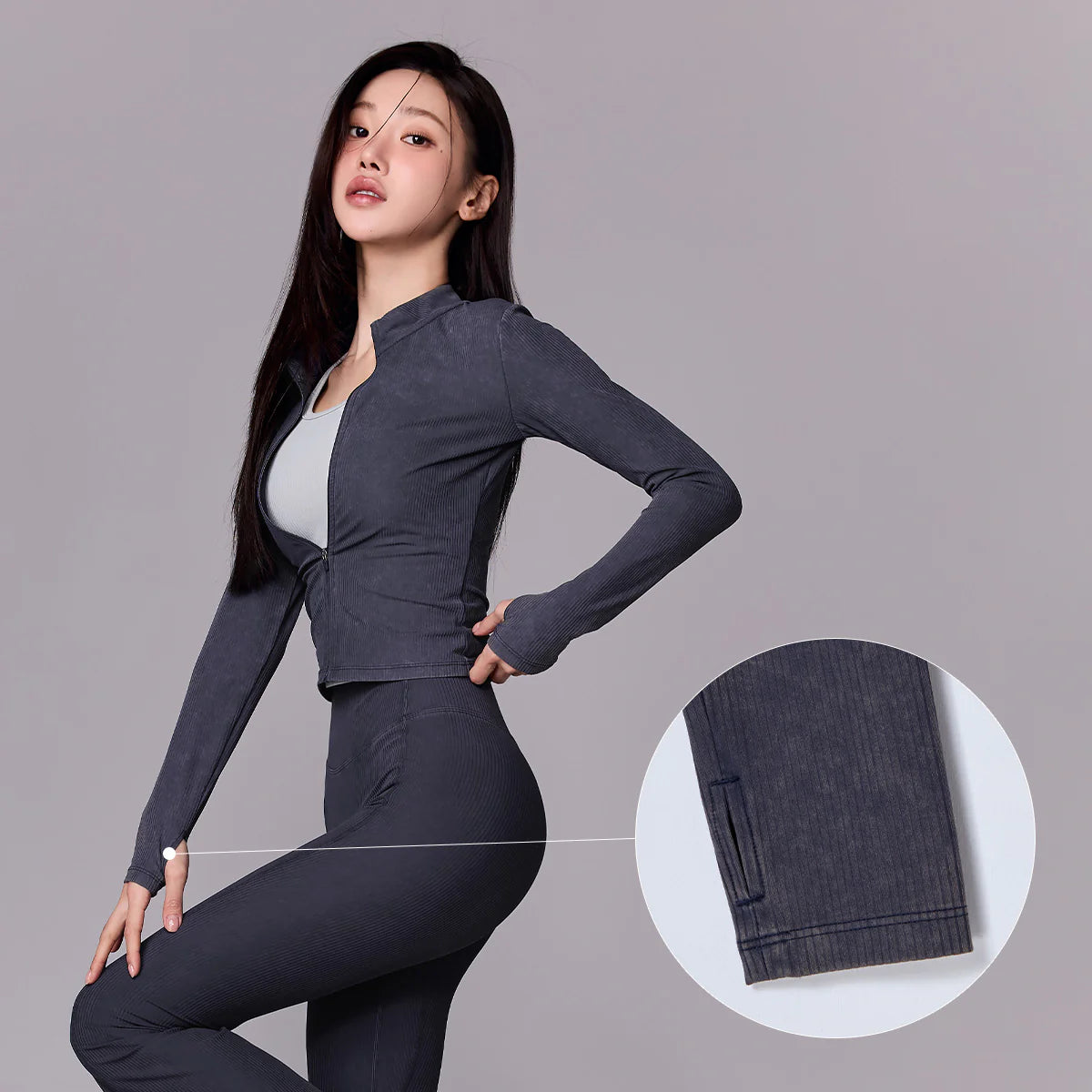 Washing Ribbed Slim Fit Zip-Up Jacket